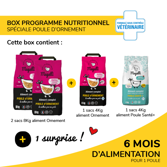 Livrée gratuitement chez vous, cette box est éligible au programme fidélité Magalli qui récompense l’amour et l’attention que vous portez à vos poules préférées.